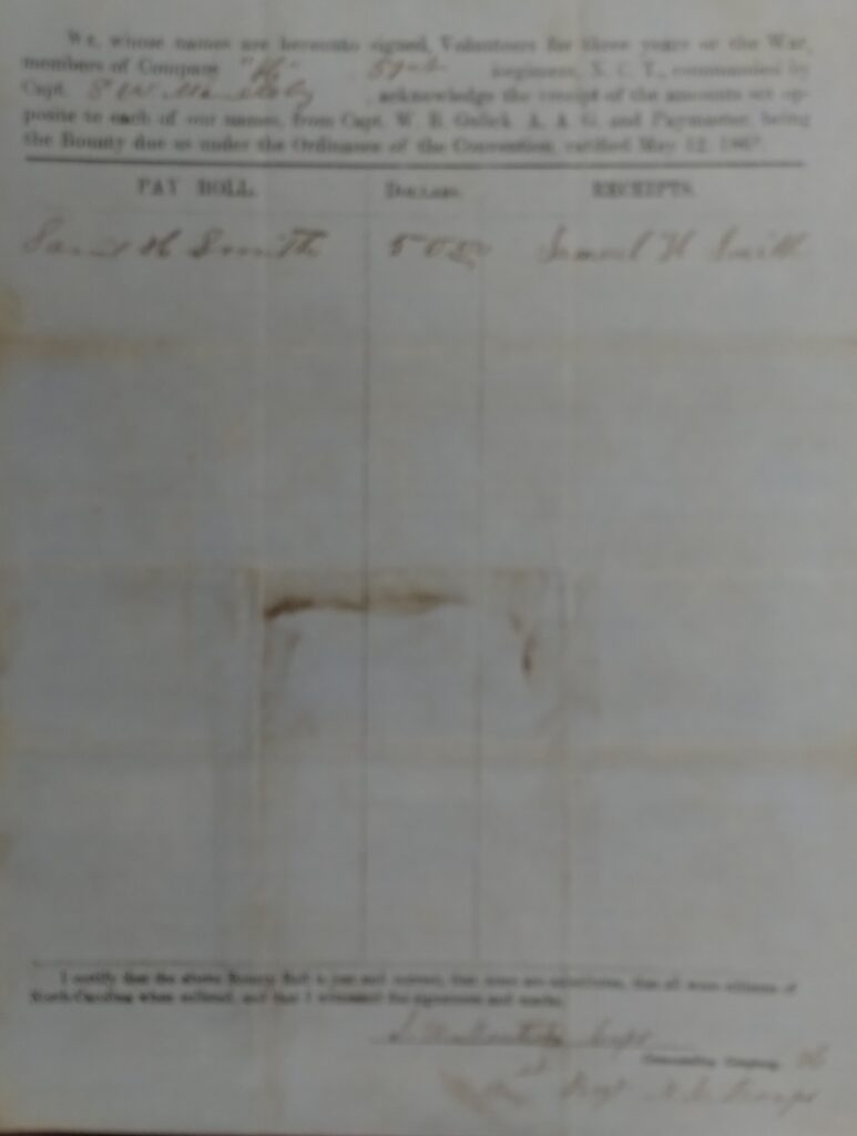 Bounty Payroll for Samuel Smith, 31 Aug. 1863