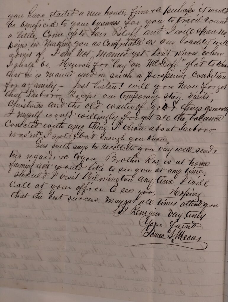 Meares wrote this letter to former Lieutenant Edwin T. McKethan after the war. The letter is part of the Edwin R. McKethan Papers #04298 in the Southern Historical Collection, Wilson Library, UNC-Chapel Hill. Images by Kirk Ward.