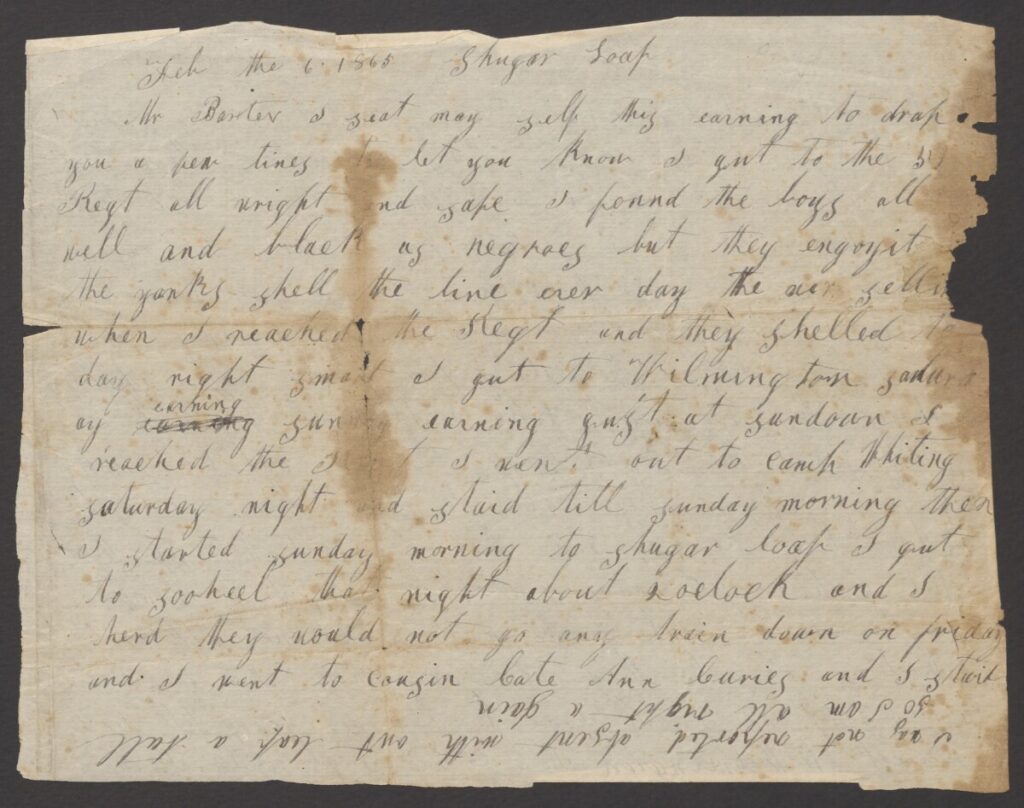 Images: Duke University David M. Rubenstein Rare Books and Manuscript Collection, Confederate Staes of America collection Box 2, Officers’ and Soldiers’ miscellaneous letters, scans 27 and 28, Online exhibit at: